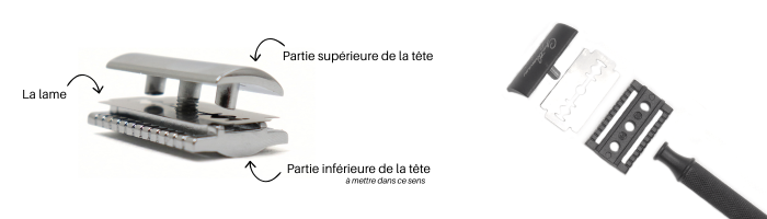 2. Séparez les deux parties de la tête et glissez la lame sur la partie supérieure de la tête (celle incurvée)