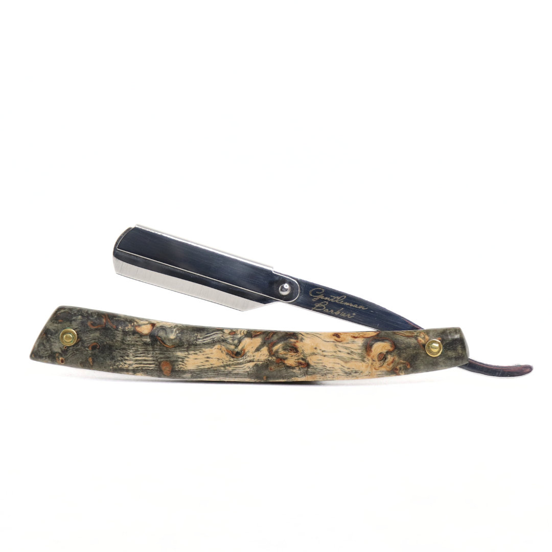 Découvrez notre rasoir Shavette d'exception en Bouleau Madré Stabilisé et Teinté.